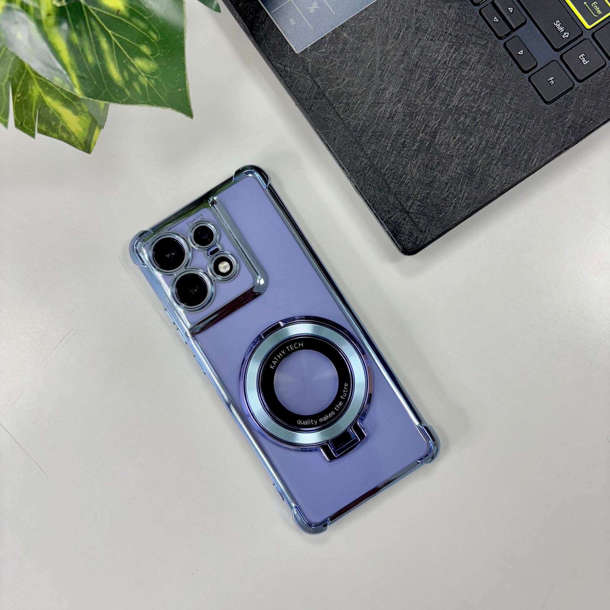 Sleek. Functional. Protective. This transparent case with a sturdy built-in non-rotating magnetic stand is perfect for hands-free viewing and magnetic mount support—without compromising on your phone’s style.