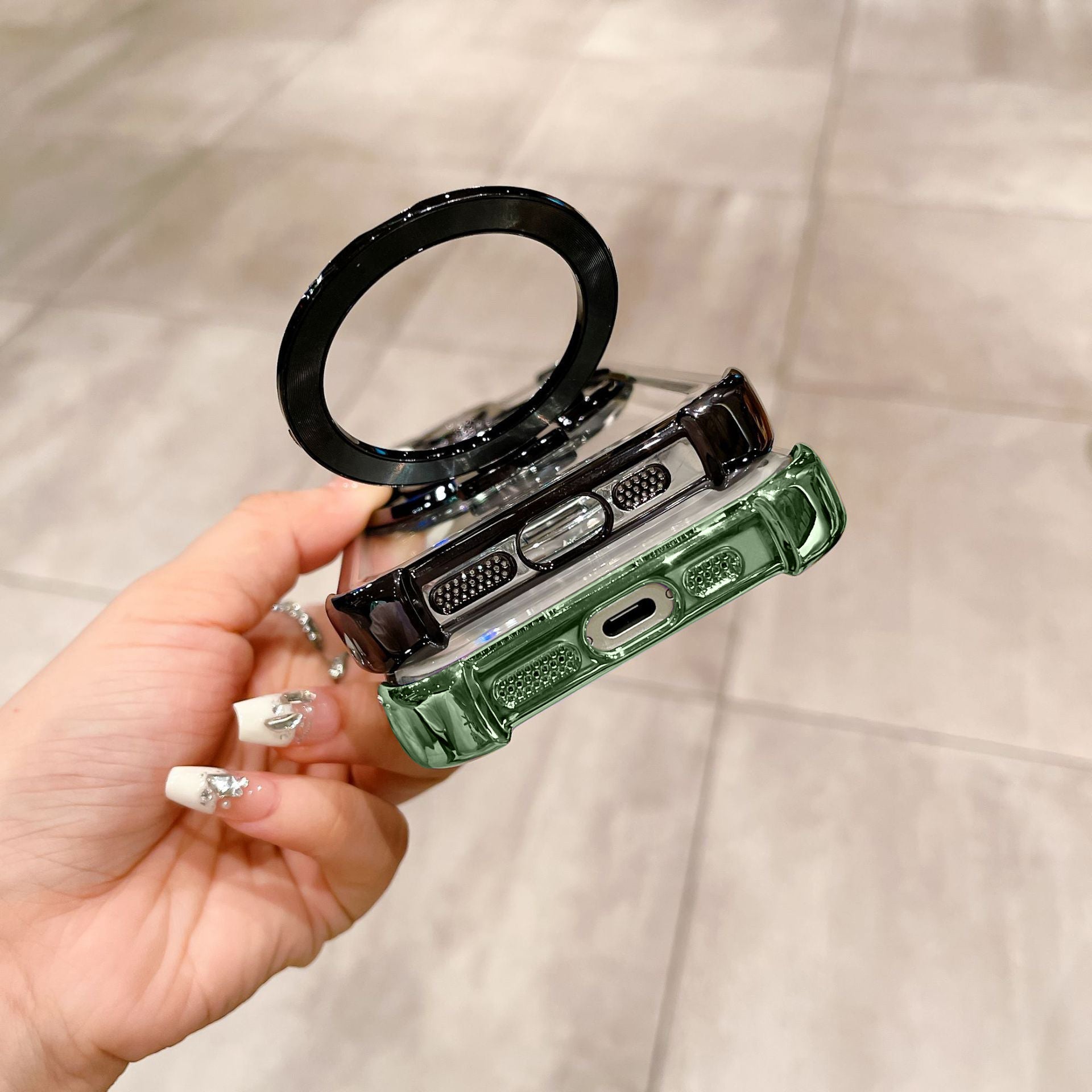 - Foldable Ring Stand: Provides hands-free viewing and a secure grip while on the go