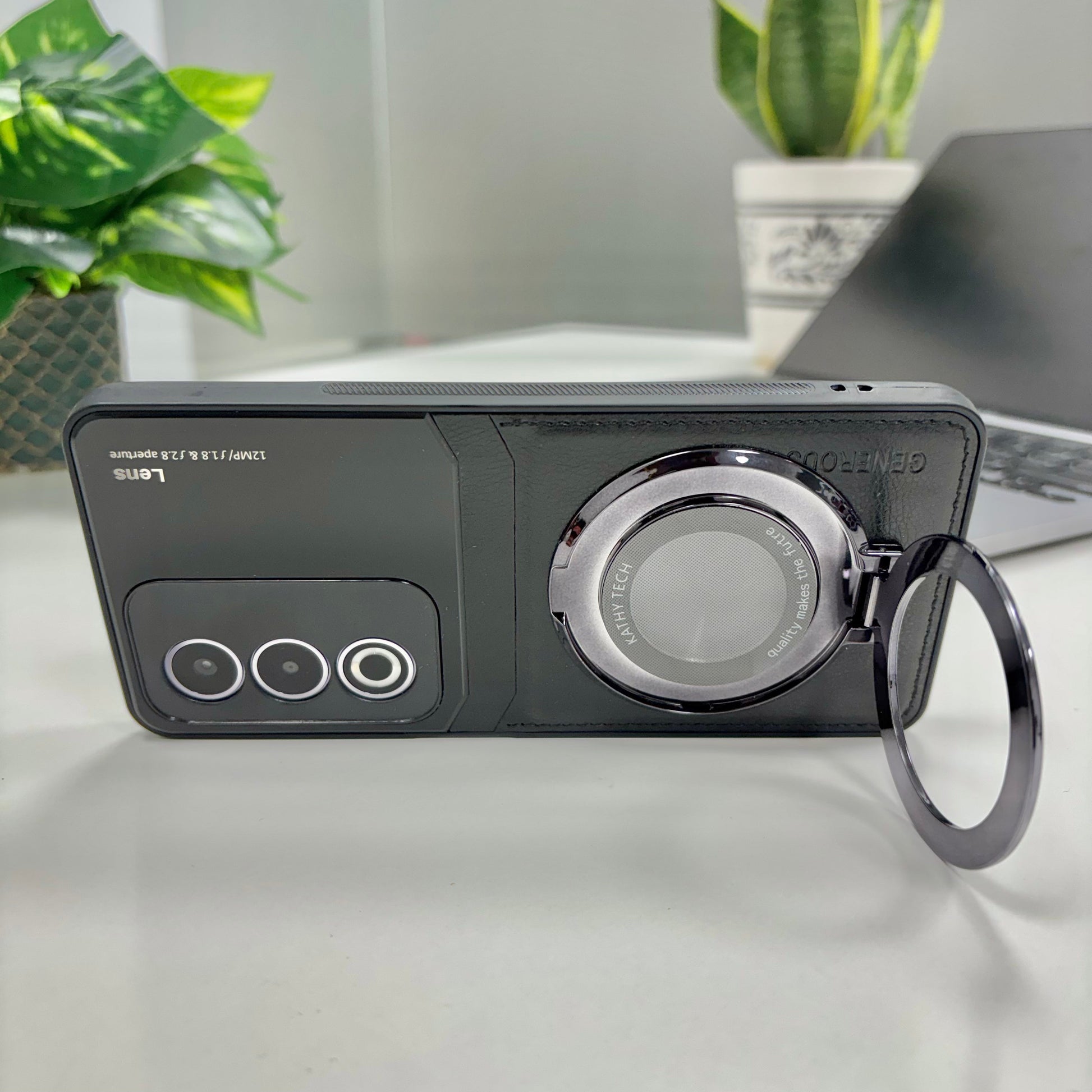 Oppo A3 Pro 5G Original Luxury Leather Lens Magnifier Ring Stand Case