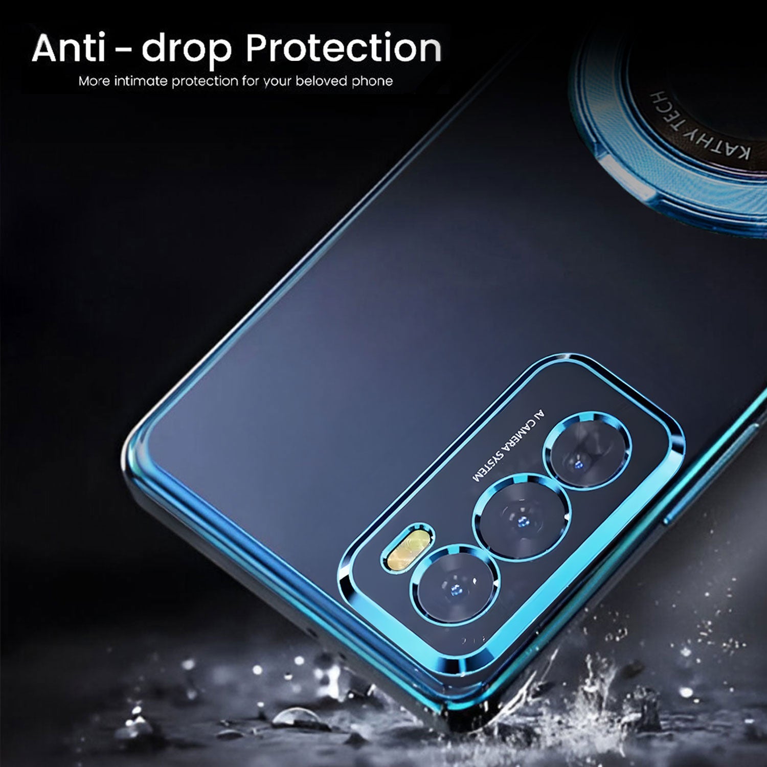 This luxury smartphone case features a sleek and transparent electroplated design with a glossy blue outline that enhances the overall aesthetics of the phone. The back showcases a unique matte pattern, offering a premium tactile feel that is both stunning and elegant. Designed with precision, the case provides an exact fit, ensuring no sliding or misalignment.