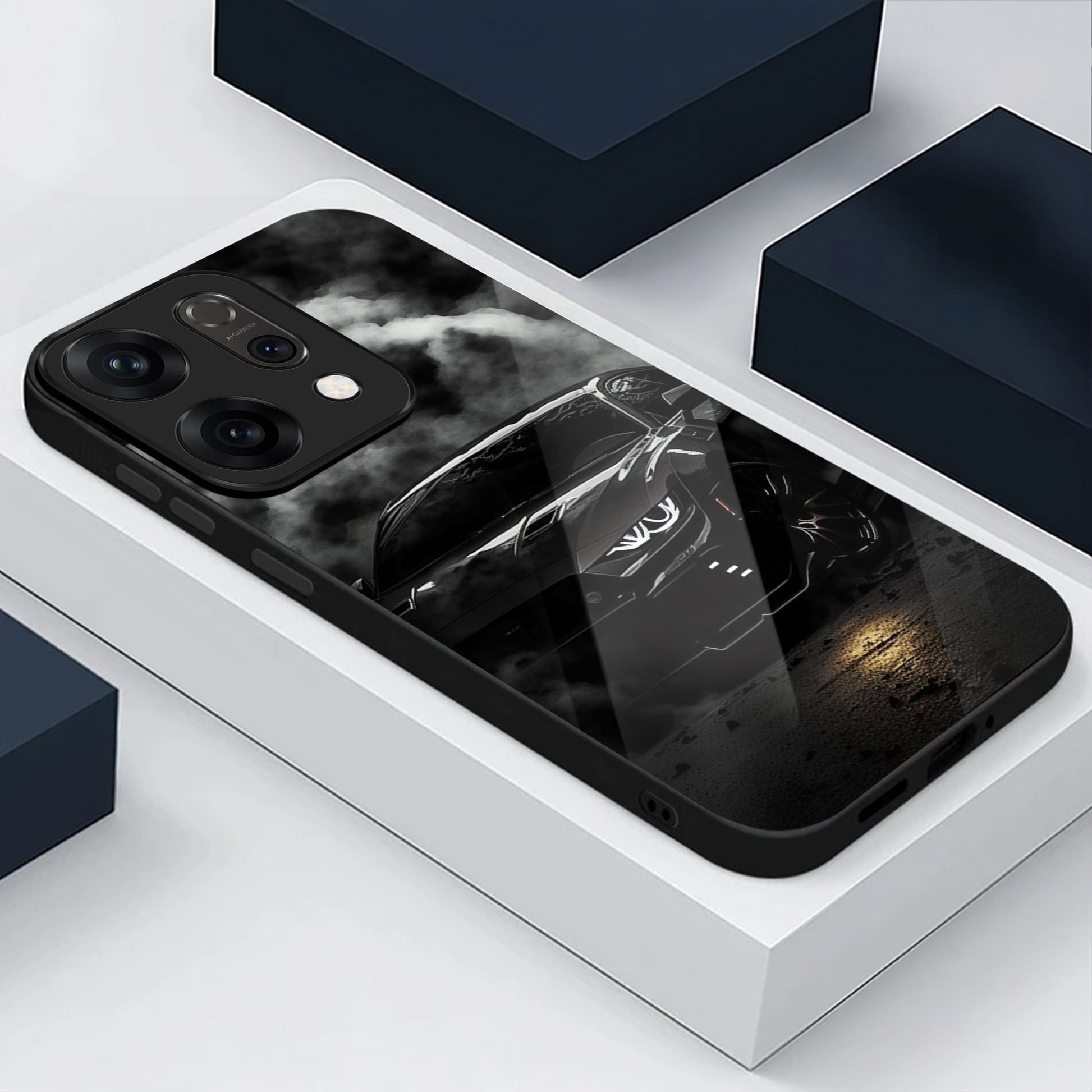 Oppo Reno 14 5G Premium Acrylic Shockproof Glass Back Case (Black-BMW)
