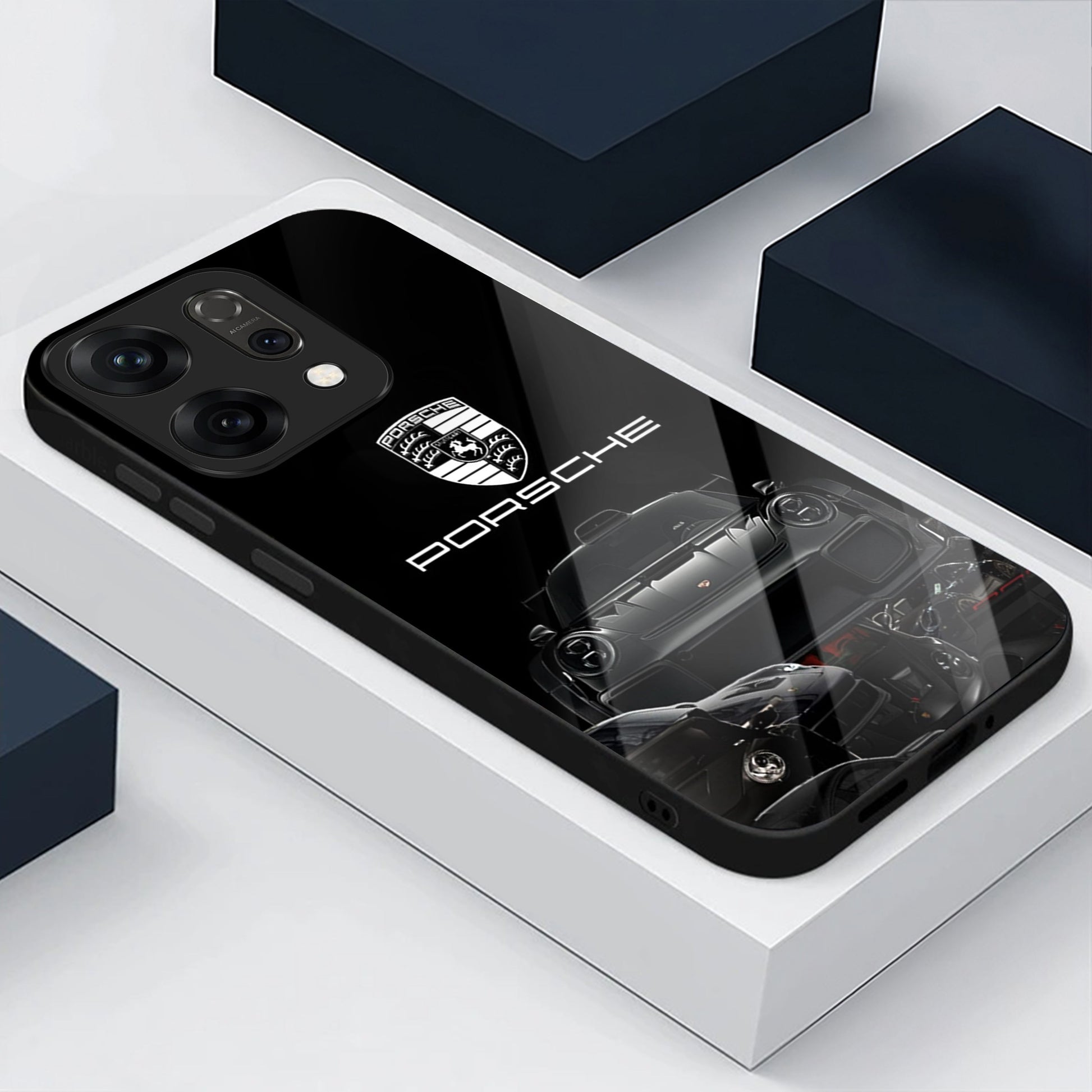 Oppo Reno 14 5G Premium Acrylic Shockproof Glass Back Case (Black Porsche)