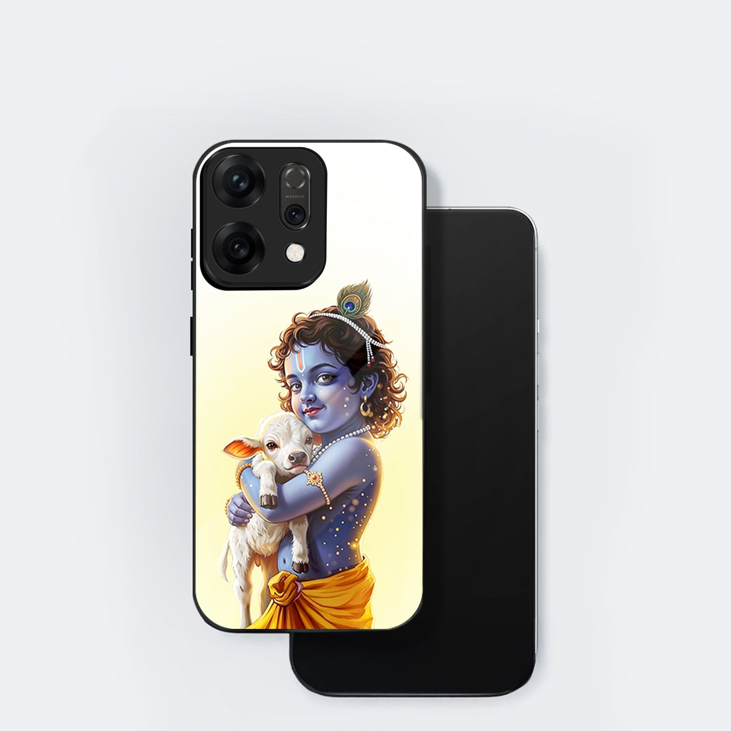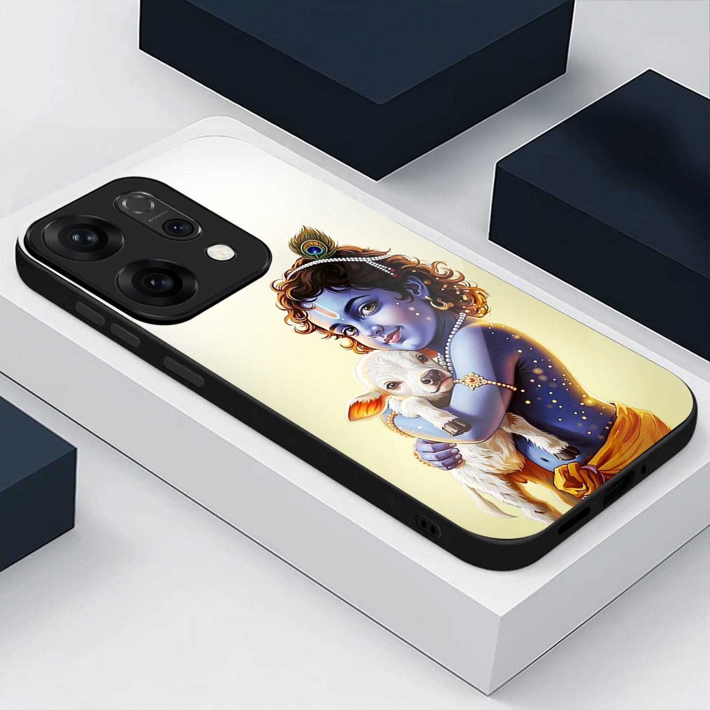 Oppo Reno 14 5G Premium Acrylic Shockproof Glass Back Case (Cute Krishna)