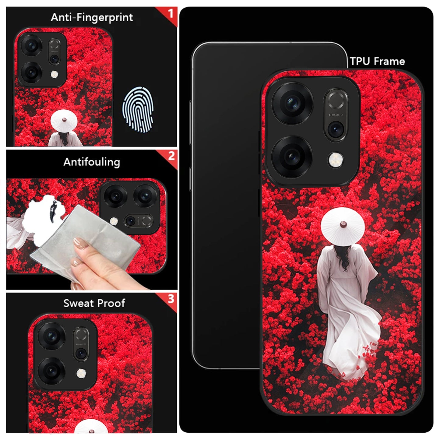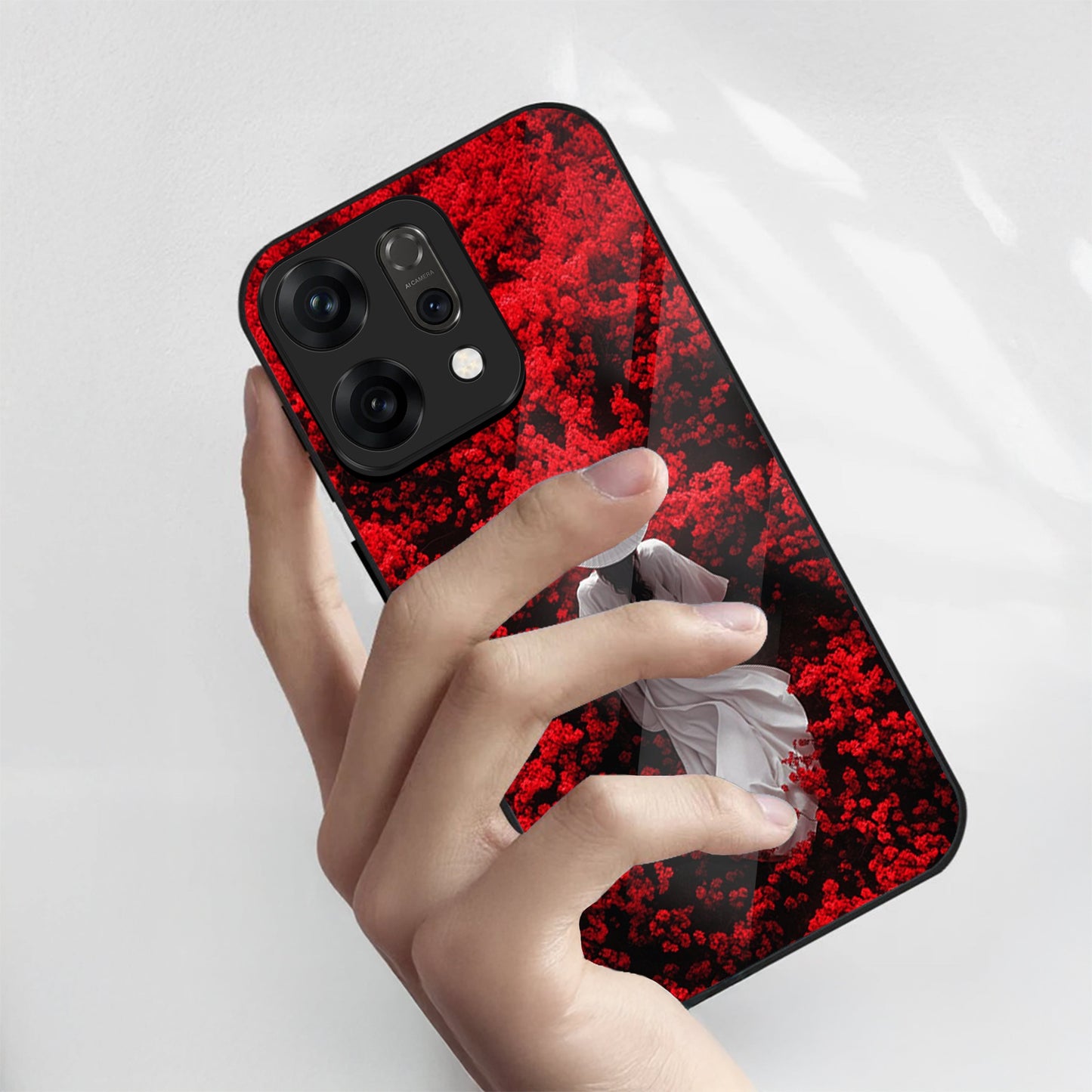 Oppo Reno 14 5G Premium Acrylic Shockproof Glass Back Case (Red Blossoms)