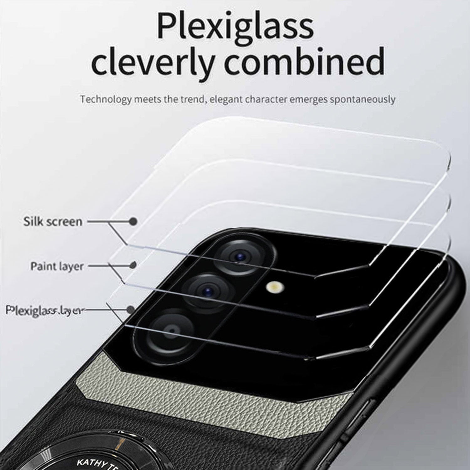 Give your Samsung Galaxy A16 5G a case that knows how to turn heads. The leather bottom feels soft, the plexiglass top adds shine, and the magnifier lens accent creates a standout look. Add in the foldable ring stand for comfort and convenience. Slim, stylish, and unique, it’s a case with personality.