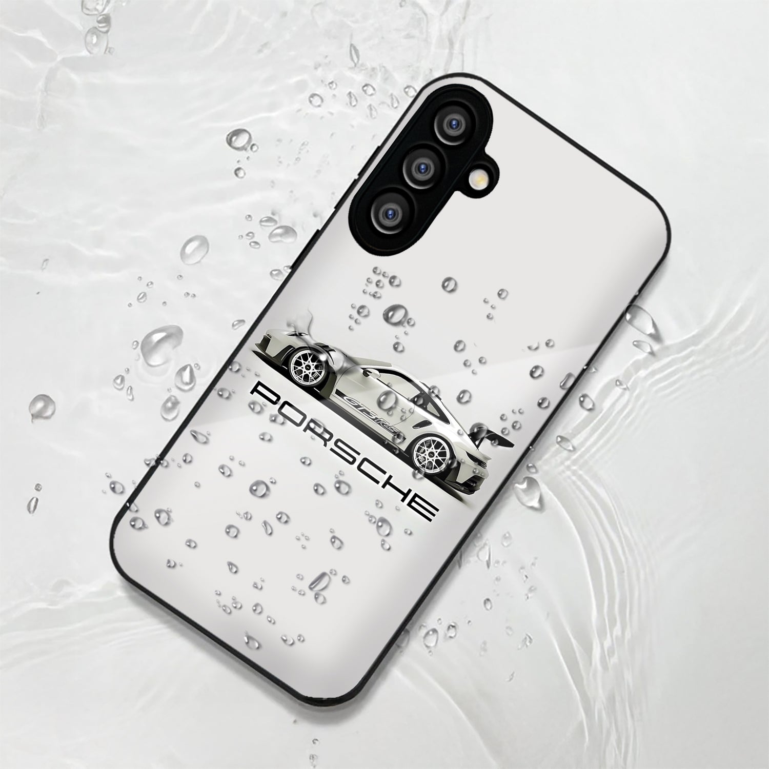 Samsung Galaxy A56 Premium Acrylic Shockproof Glass Back Case (White Porsche)