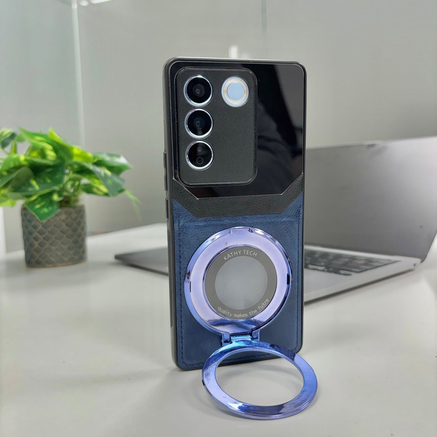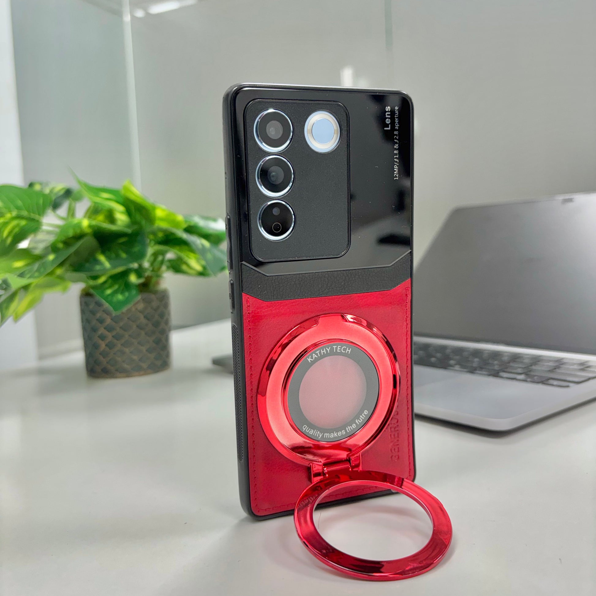 Vivo V27 5G Original Luxury Leather Lens Magnifier Ring Stand Case