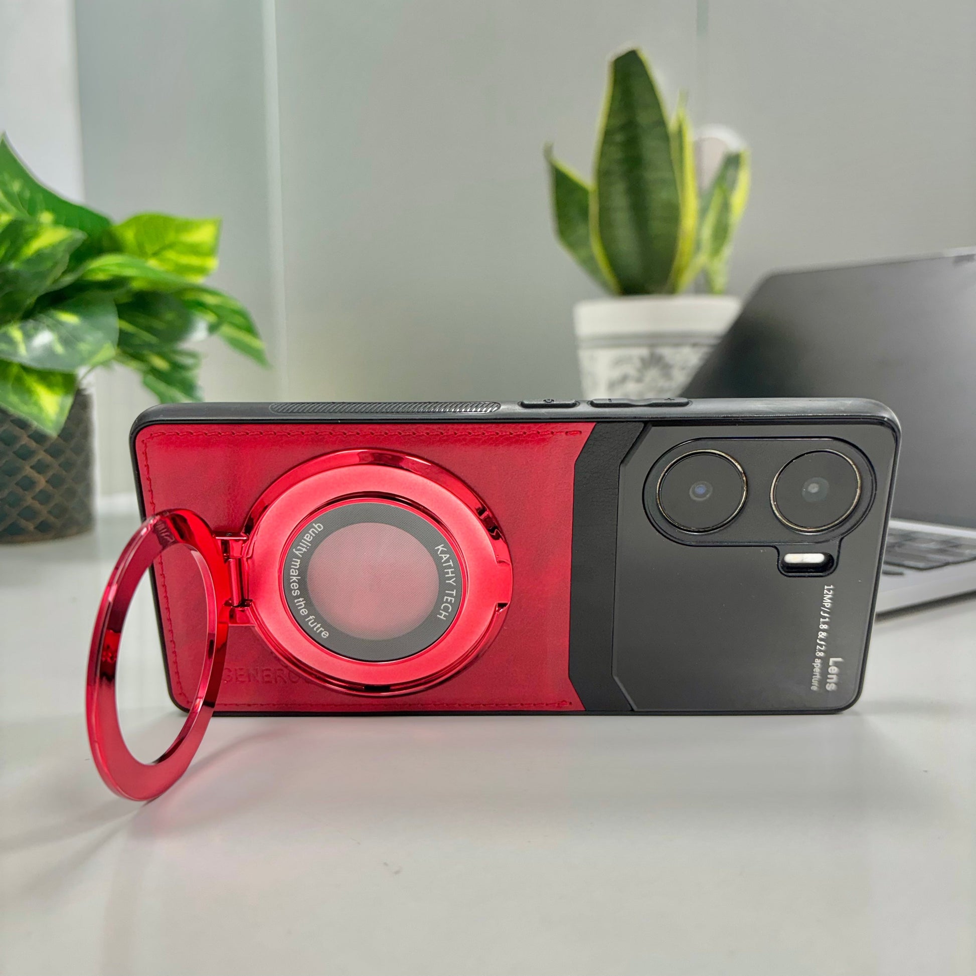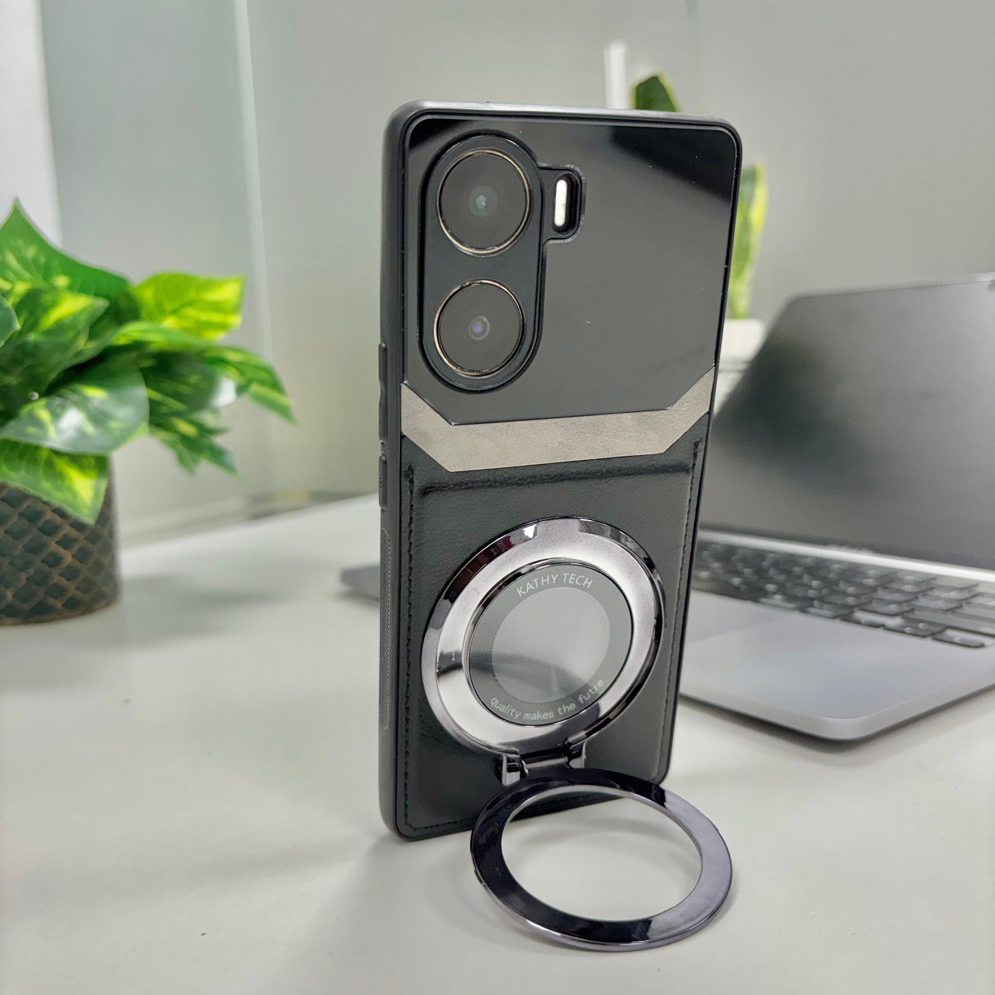Vivo V29e 5G Original Luxury Leather Lens Magnifier Ring Stand Case