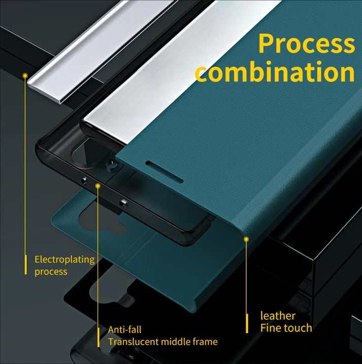 - The case is designed with High quality Polycarbonate + Polyurethane Leather.