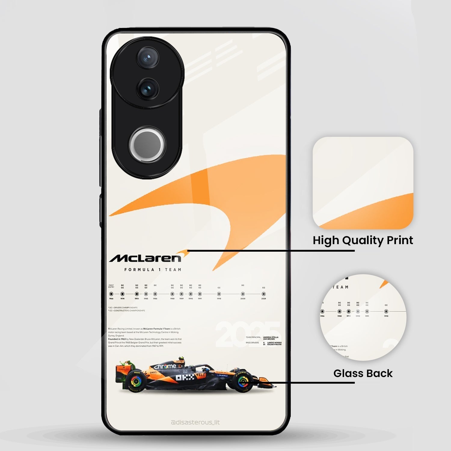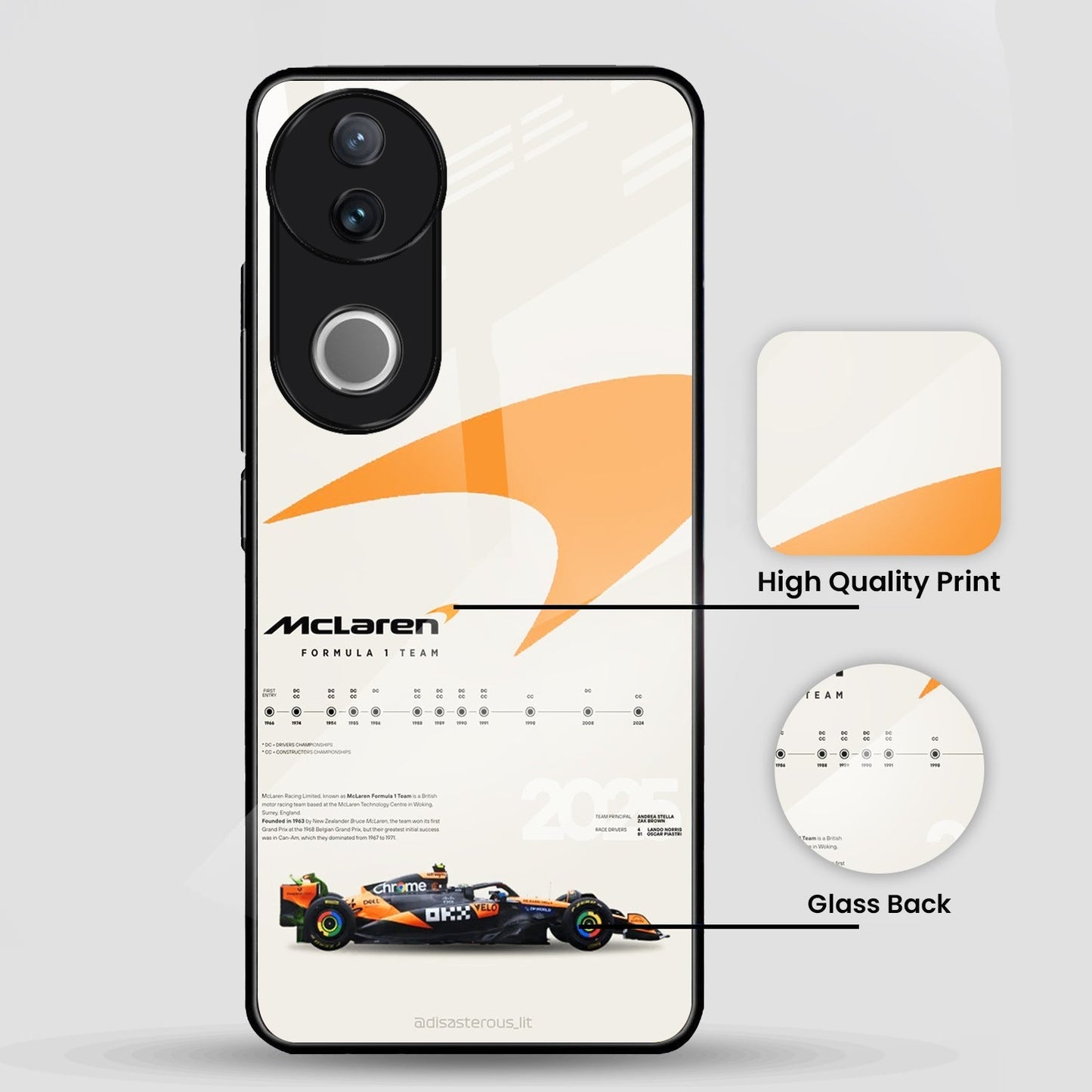 Vivo V50 5G Premium Acrylic Shockproof Glass Back Case (McLaren Case)