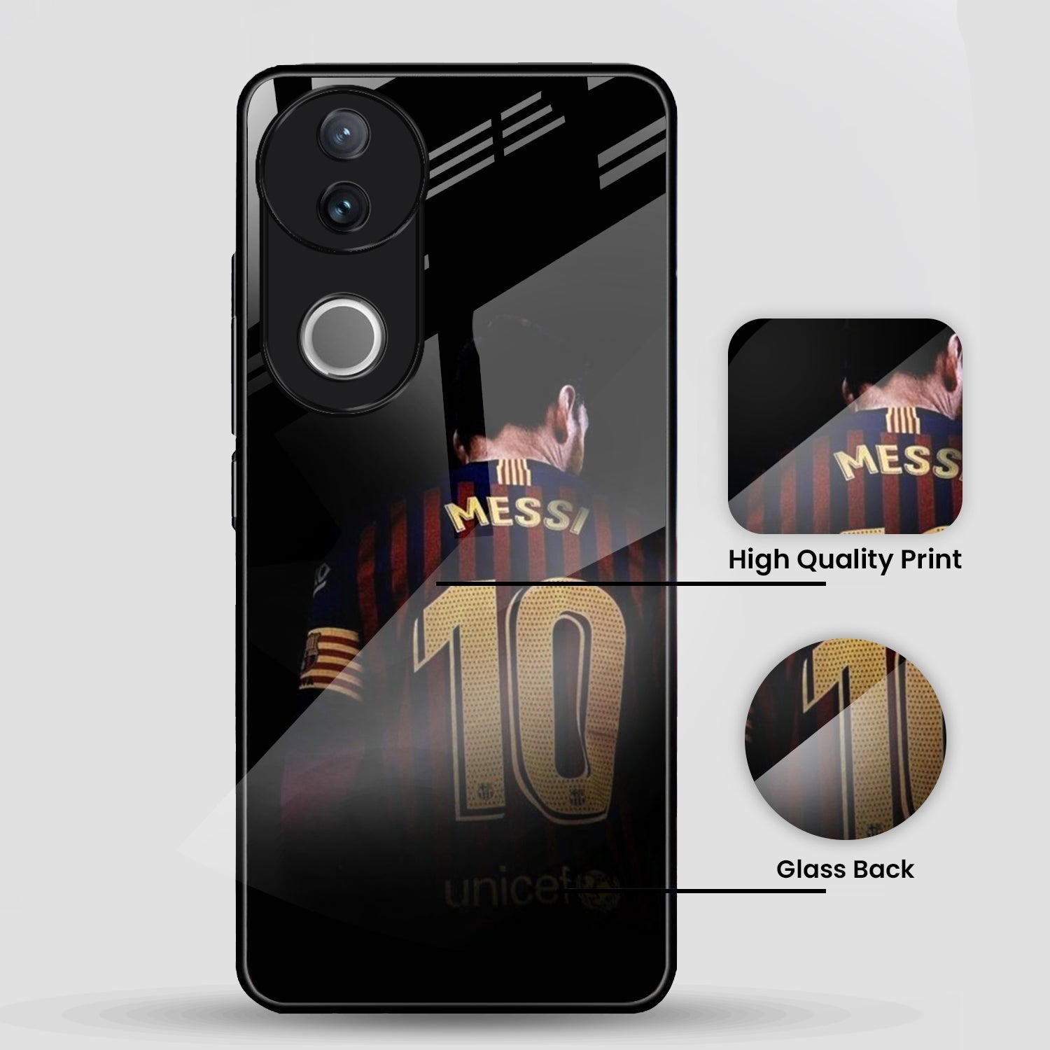 Vivo V50 5G Premium Acrylic Shockproof Glass Back Case (Messi)