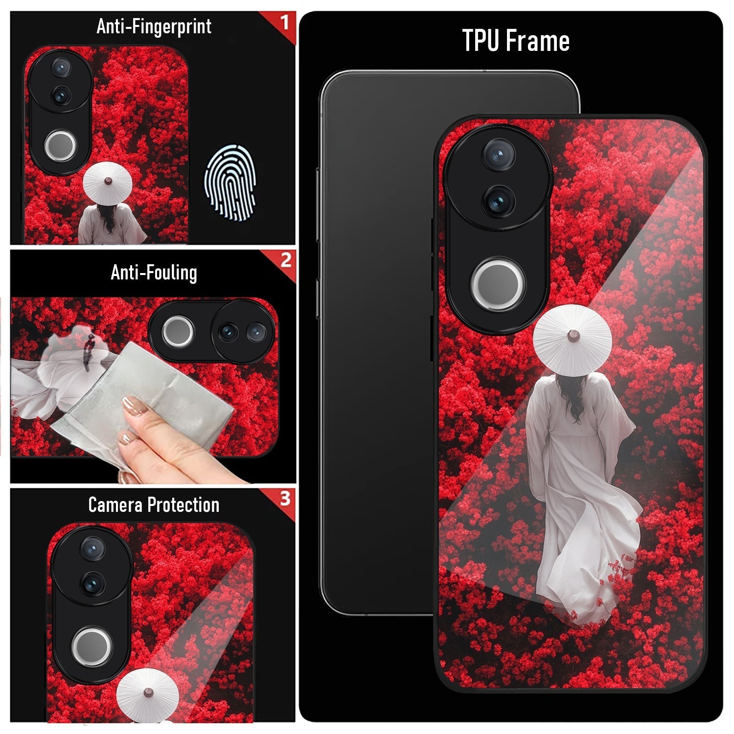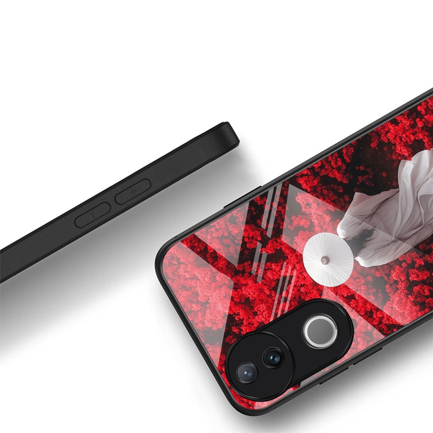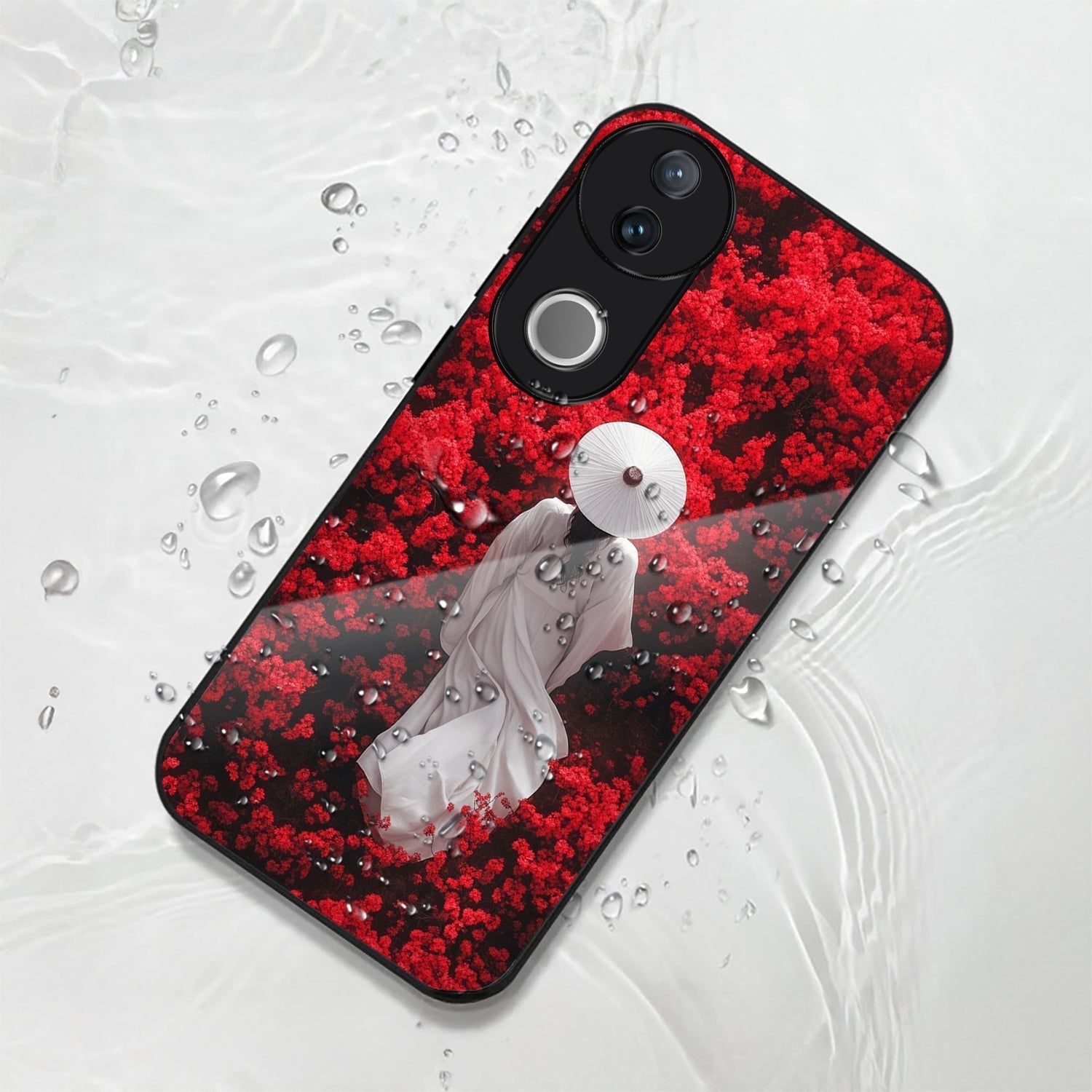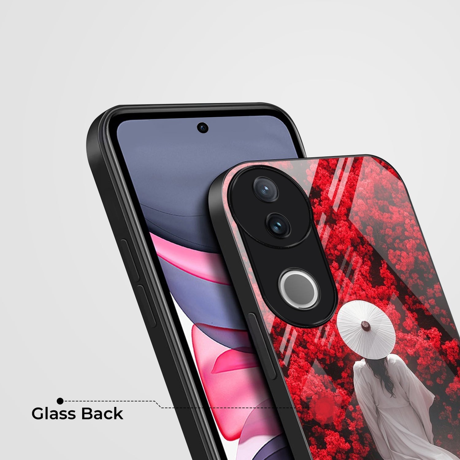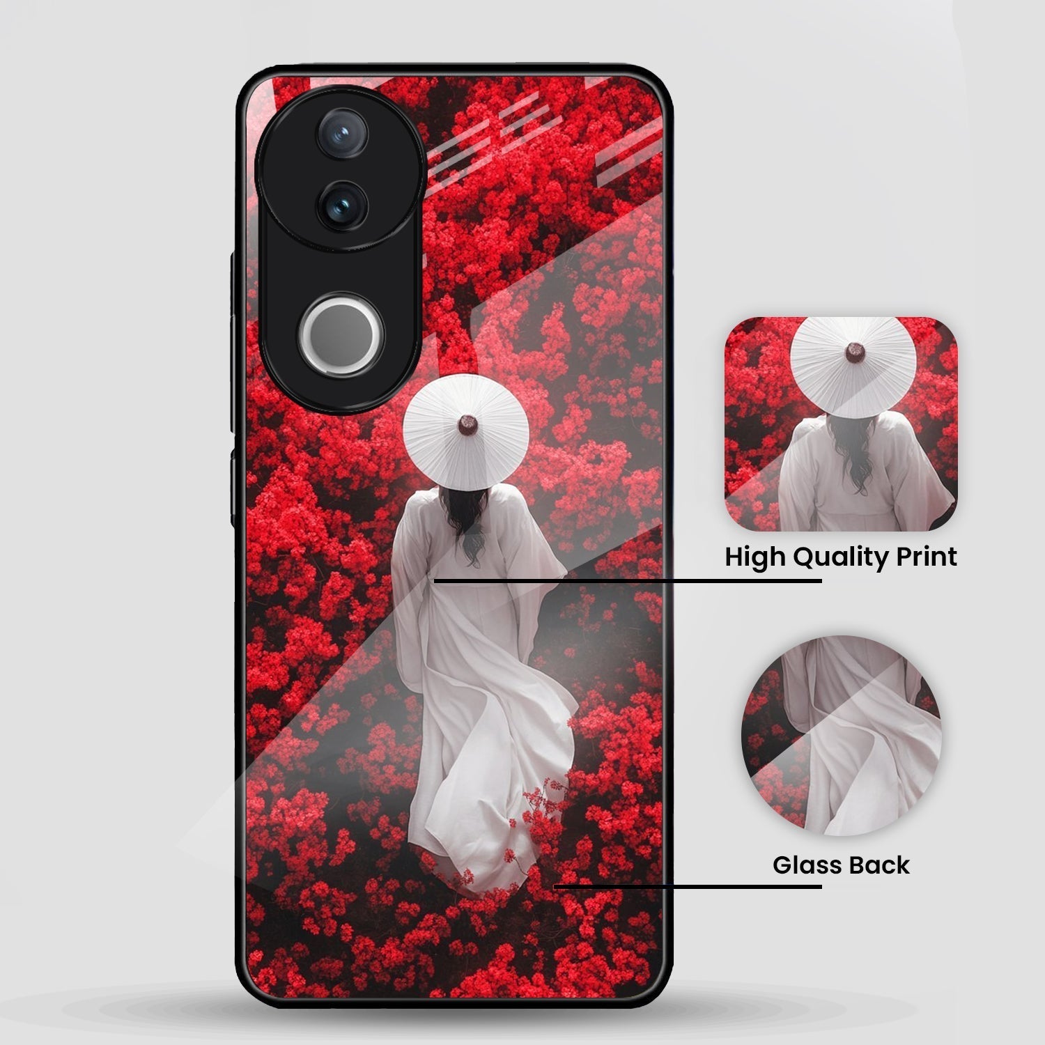 Vivo V50 5G Premium Acrylic Shockproof Glass Back Case (Red Blossoms)