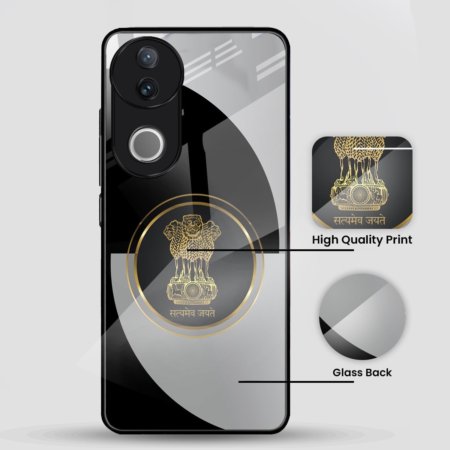 Vivo V50 5G Premium Acrylic Shockproof Glass Back Case (Satyamev Noir)